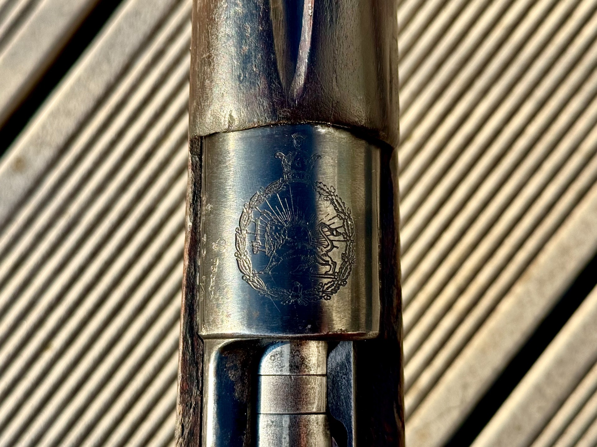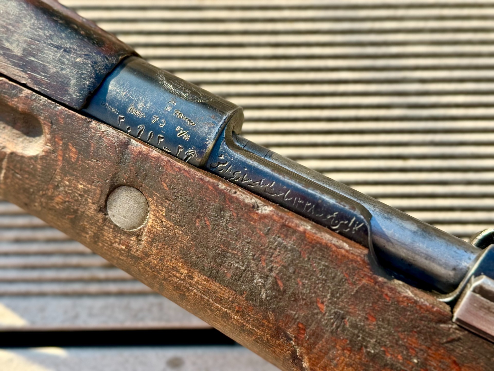 Karabina je v dobrém celkovém stavu. Kovové části mají původní povrchovou úpravu, jsou bez koroze a nesou jen běžné stopy používání. Hlaveň je zmatnělá, avšak s ostrými a dobře zachovanými drážkami. Pažba z domácího íránského dřeva je v dobrém stavu, bez prasklin, se stopami dlouhodobého používání odpovídajícími typu a historii zbraně.