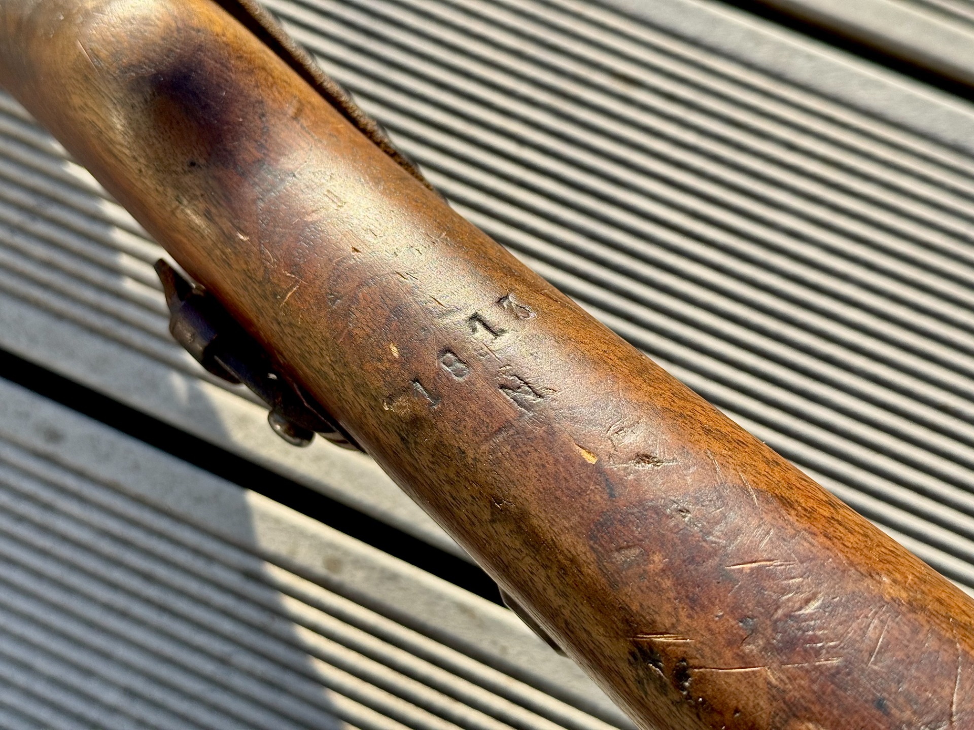 Ke zbrani náleží také původní kožený řemen, dochovaný ve velmi dobrém stavu.