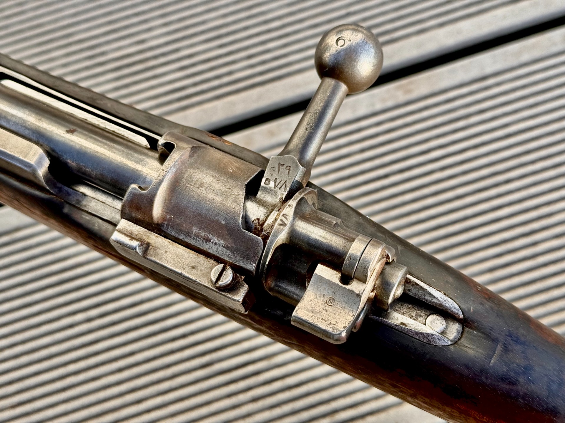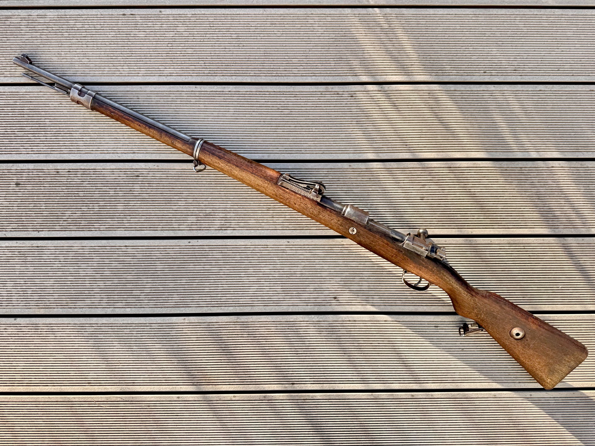 Kovové části nesou původní povrchovou úpravu. Pažba z ořechového dřeva je ve velmi dobrém stavu a nese původní turecké služební značení (útvarové označení a číslo zbraně). Hlaveň má obvyklý lehce matný vývrt, drážky jsou ostré a hluboké.
