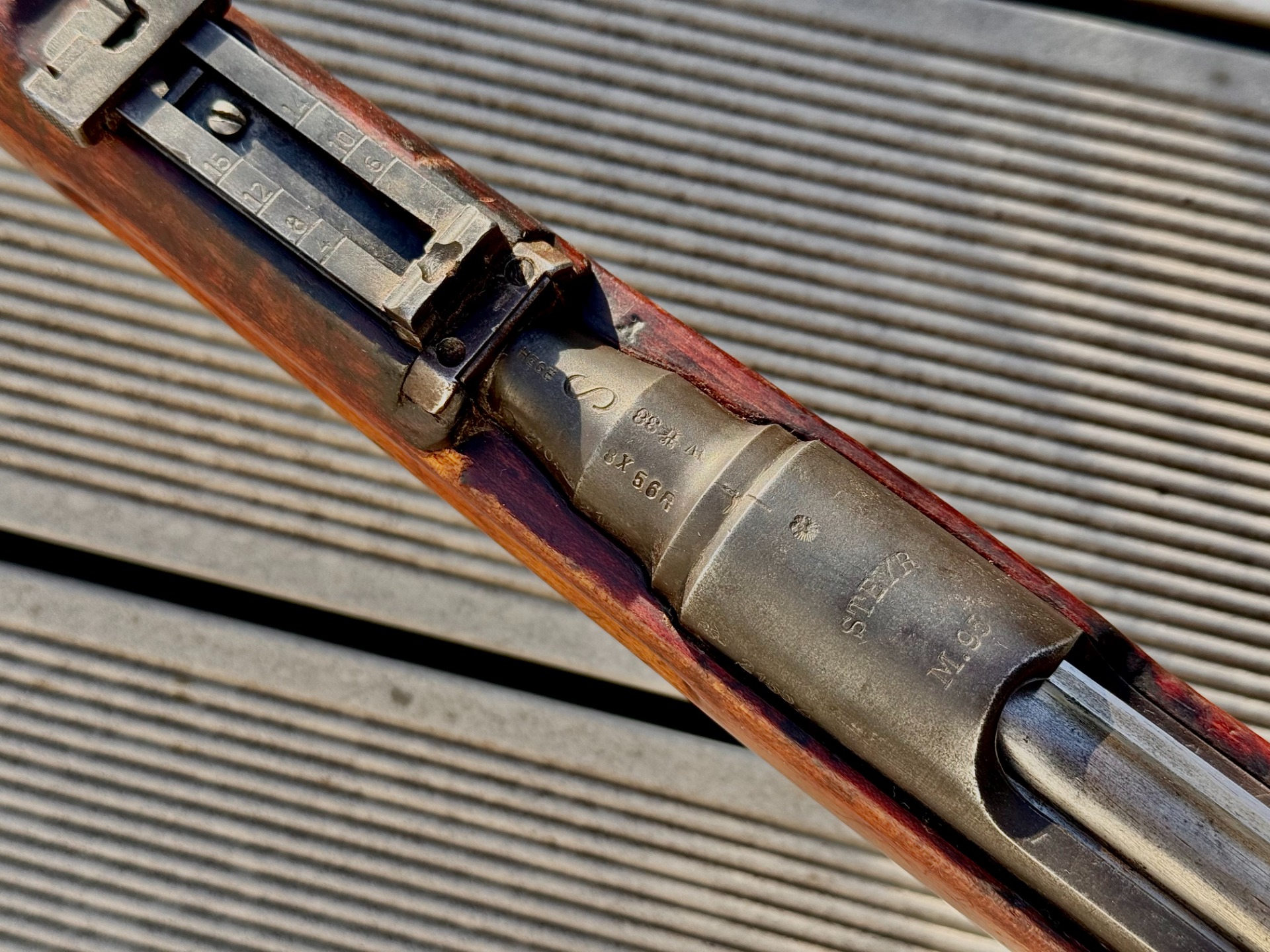 Tento kus Repetierewehr M.95/37 pochází z výroby ve zbrojovce OEWG Steyr. Původní rok výroby nelze určit, ale podle sériového čísla s doplňkovým písmenem Z pochází zřejmě z let 1918-1919. Podle přejímacích značek prošla v roce 1938 ve vídeňské Staatsfabrik konverzí na ráži 8×56 R M.30, v rámci které dostala novou hlaveň.