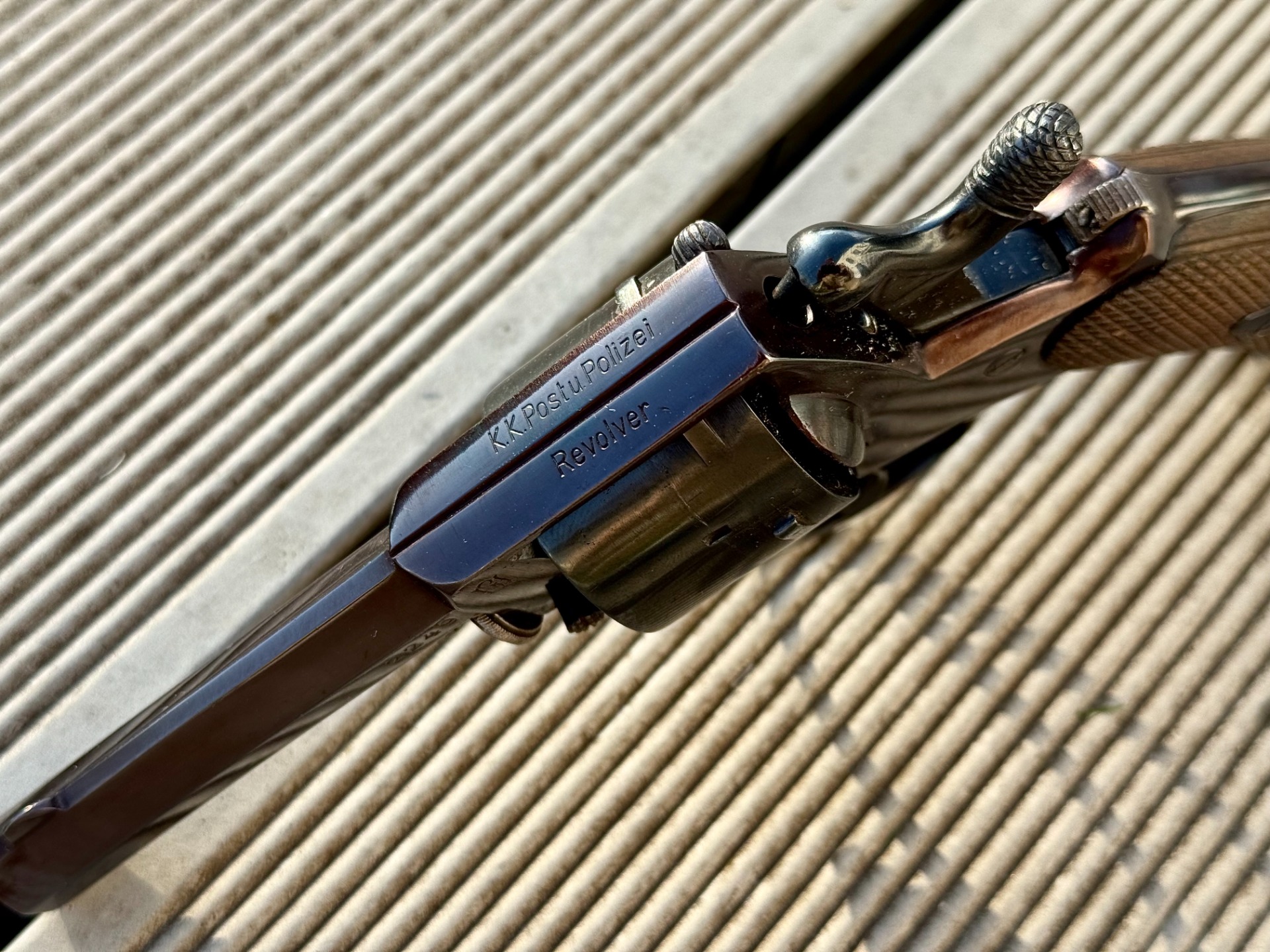 Nabízený revolver K.K. Post- und Polizeirevolver byl vyroben firmou Leopold Ulrich a podle zkušební značky pochází z roku 1910. Je ve velmi dobrém technickém stavu po starší citlivé renovaci. Kovové části nesou novou povrchovou úpravu, původní značení všech dílů je zachováno. Původní dřevěné střenky jsou v dobrém stavu. Časování je přesné, uzamčení válce pevné, přechodový kužel není opotřebovaný. Vývrt je matný s ostrými drážkami. Zbraň nese platnou dobovou zkušebnu. Zajímavý a sběratelsky cenný služební revolver pozdního období habsburské monarchie, navazující přímo na tradiční konstrukci firmy Gasser.